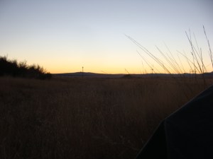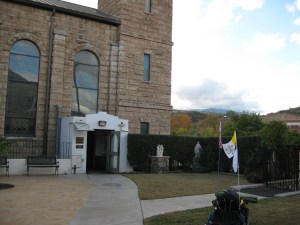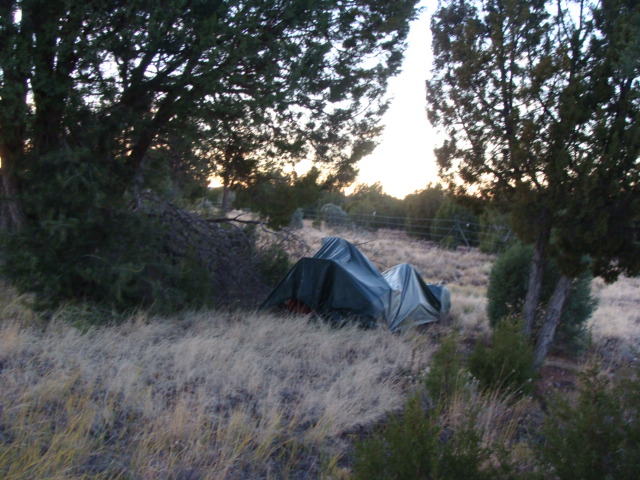 It was like a slow motion Nature show of the sun rising, My walking pulling the Ice Trike by a bungee cord around my waist was the slow motion part. As I put in pictures of today while sitting here in another tarp camp, I am totally amazed at what is possible for all of us. From the bottom of the canyon, slowly pulling out in to the sunshine and then helped out of the blue by a complete stranger, and getting to a really beautiful church in time and beyond. WOW!!!