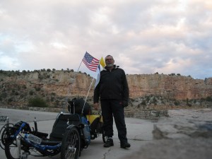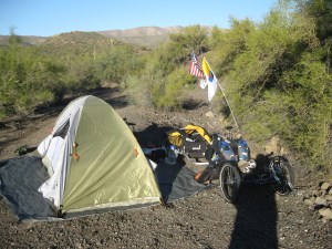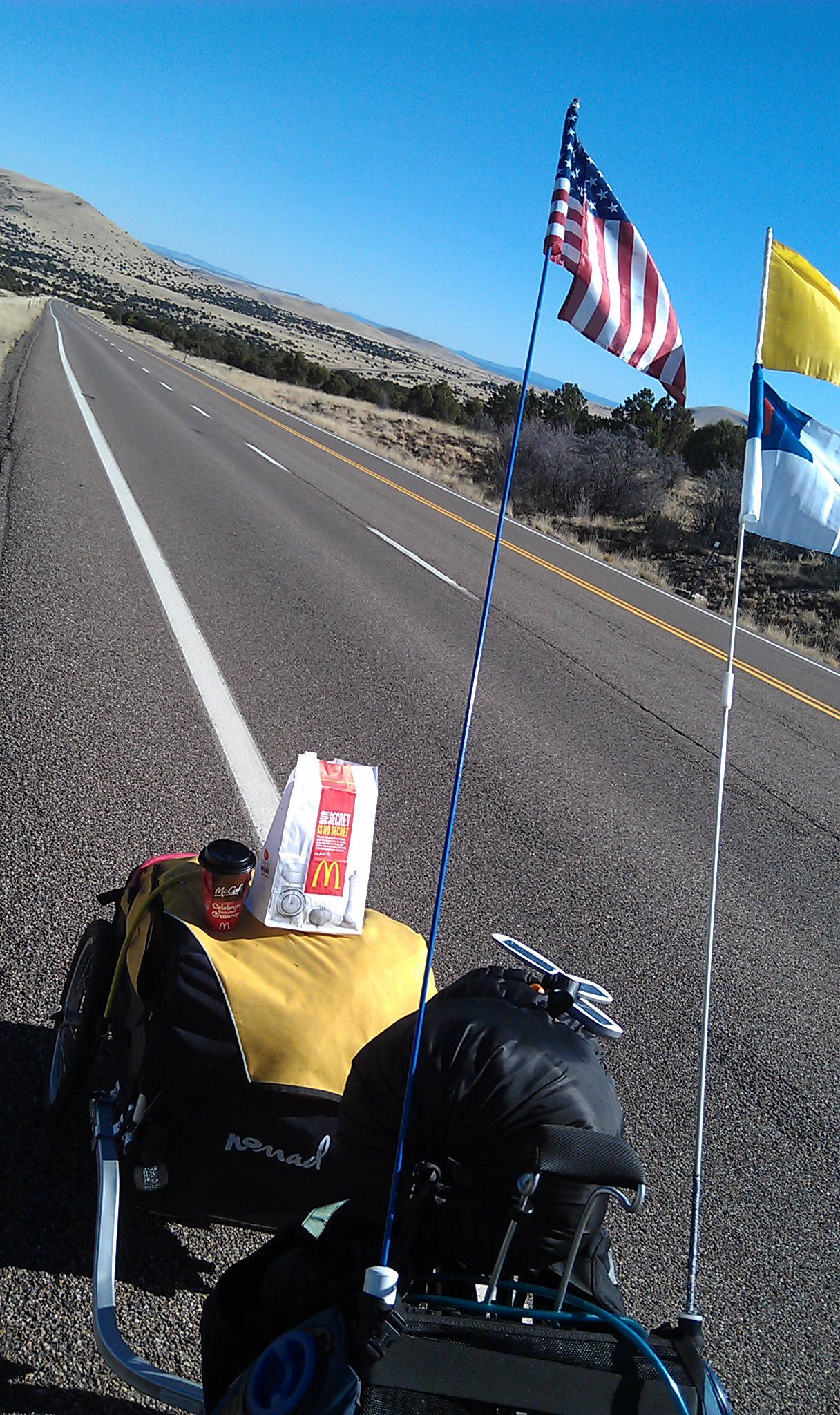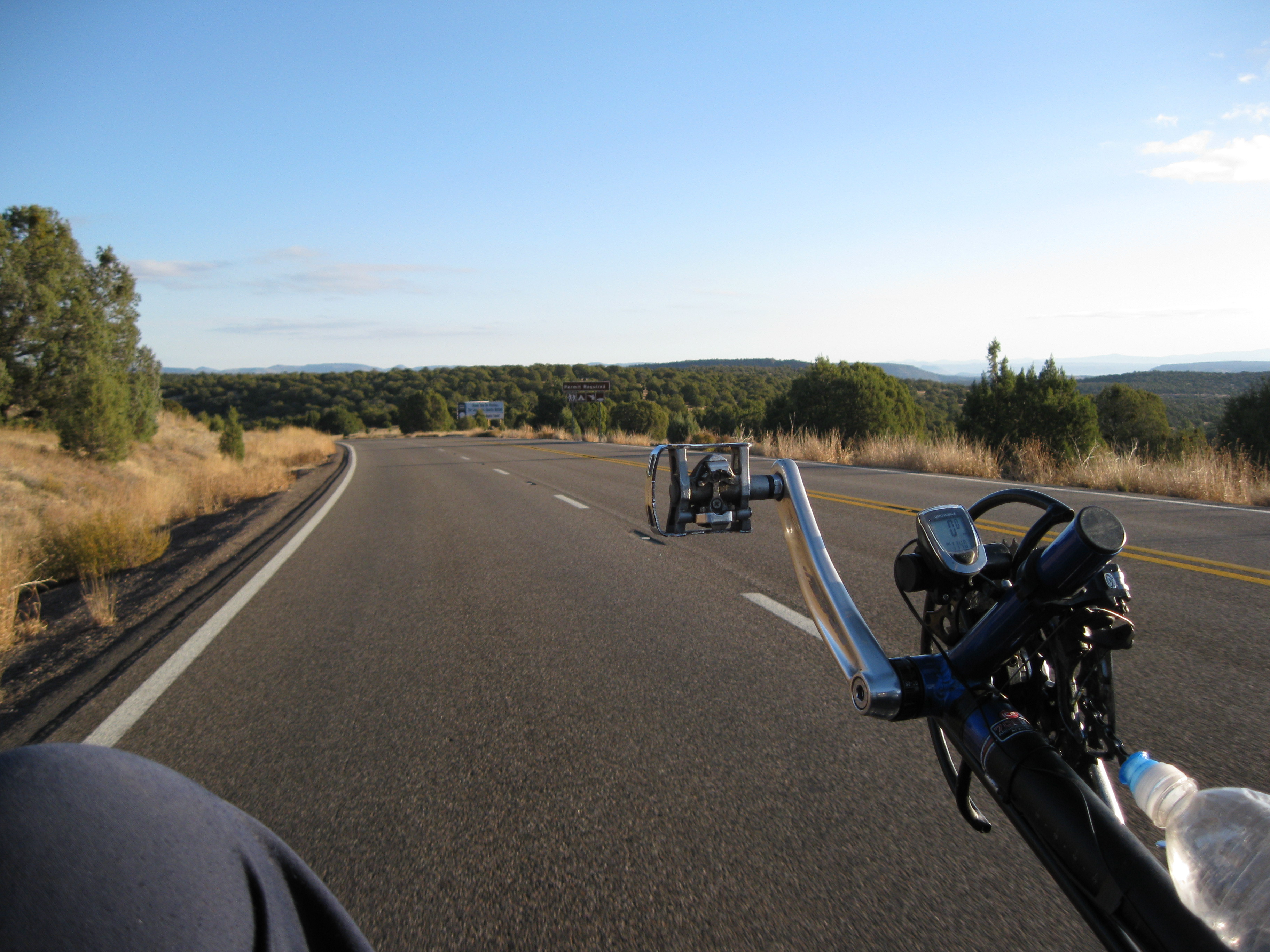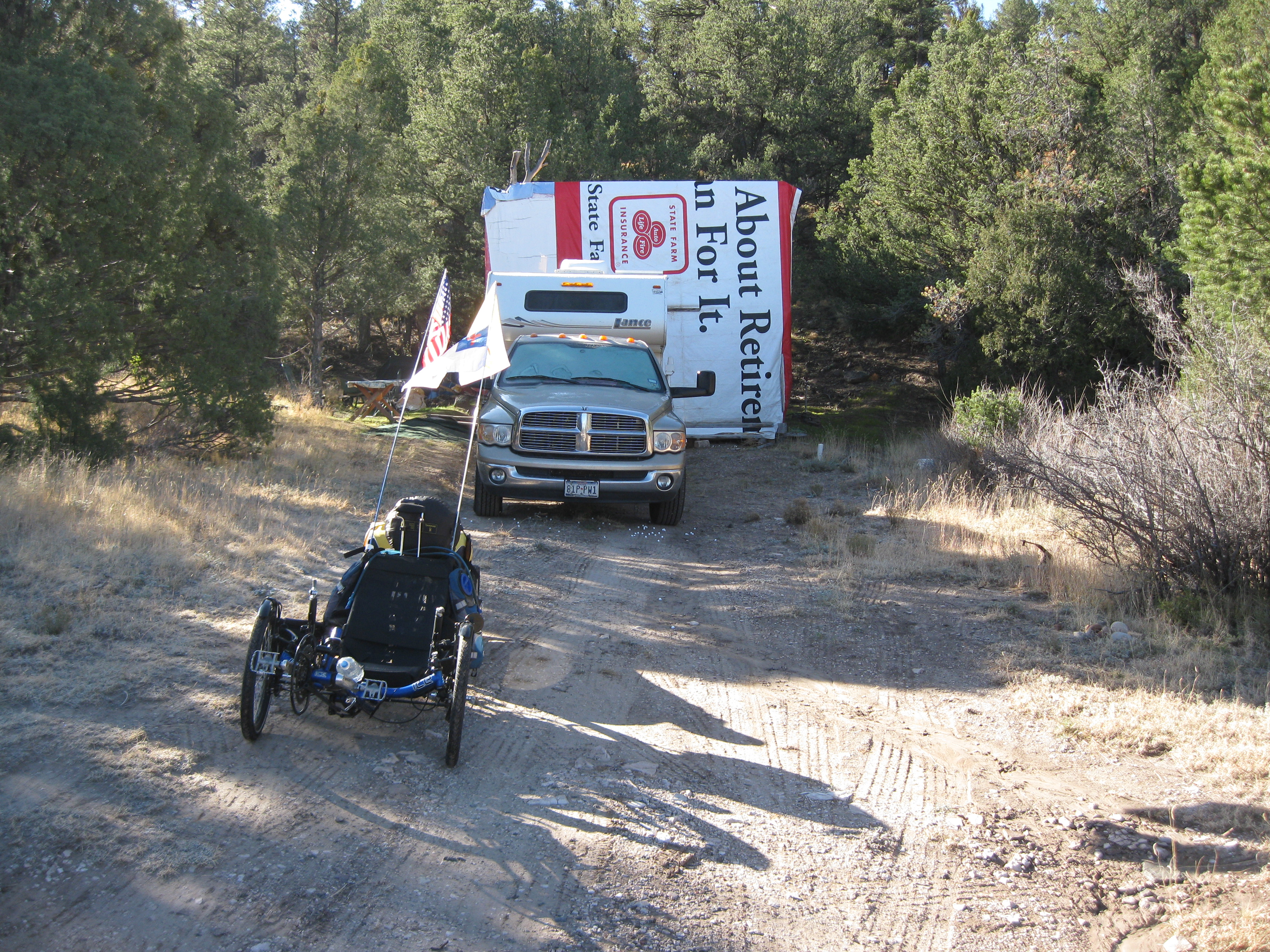 I said how far? A very nice Apache Indian family Dad, Mom and Son heading in to Phoenix to see their daughter who has been in the hospital for a week. I didn’t say I was going to peddle the Ice Trike on a 12,000 mile journey, I just said were were going on a 12,000 mile journey. In any case I rode in the back with it, so we covered the next 15miles of up together. Turns out man often hitch hiked when he was younger and always stops for people who look like they need a ride. I guess I looked like it and he knew how much more up there was.
