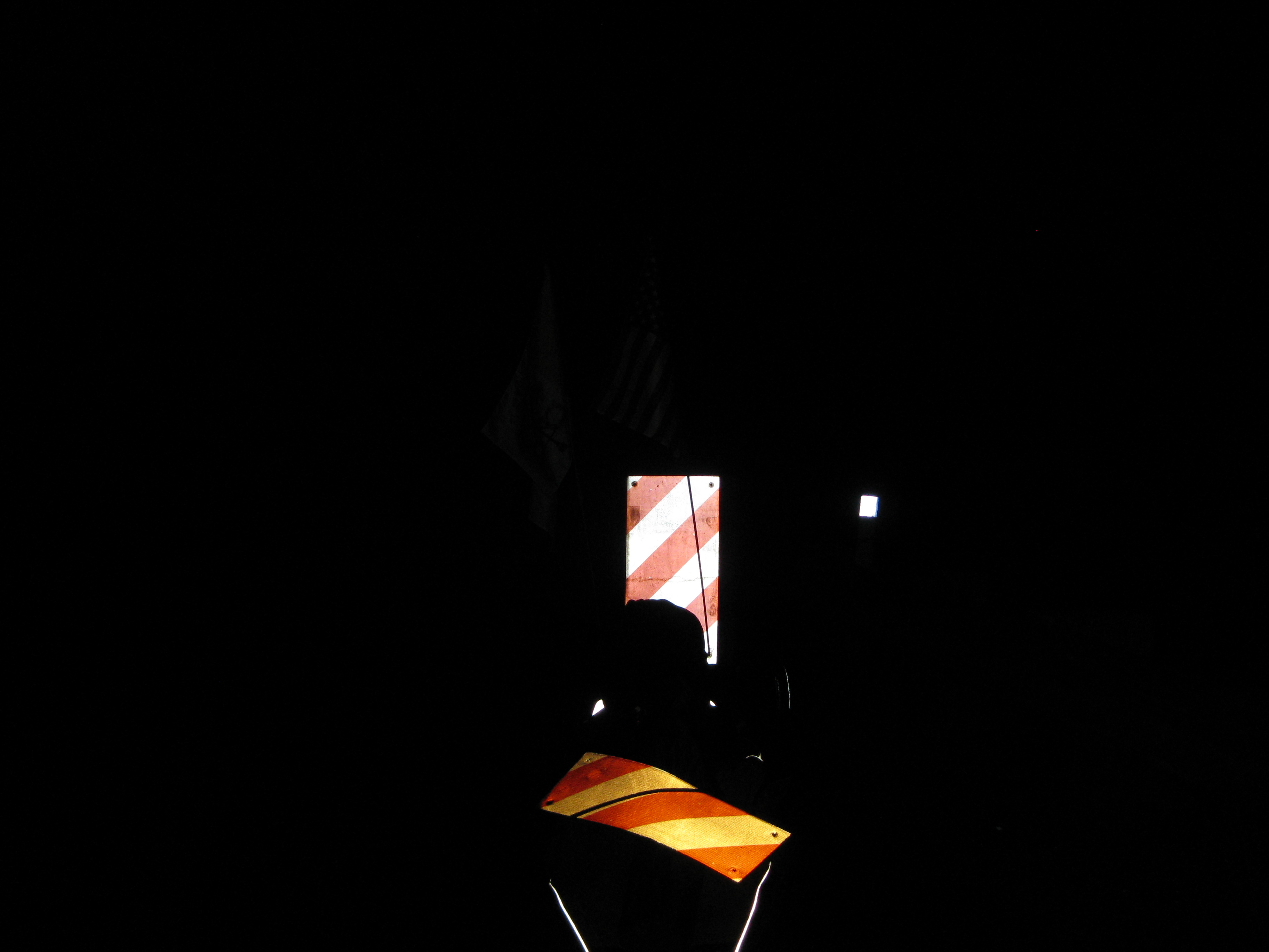 I found a highway baracade that was lying down and use the reflective panels and flashlight