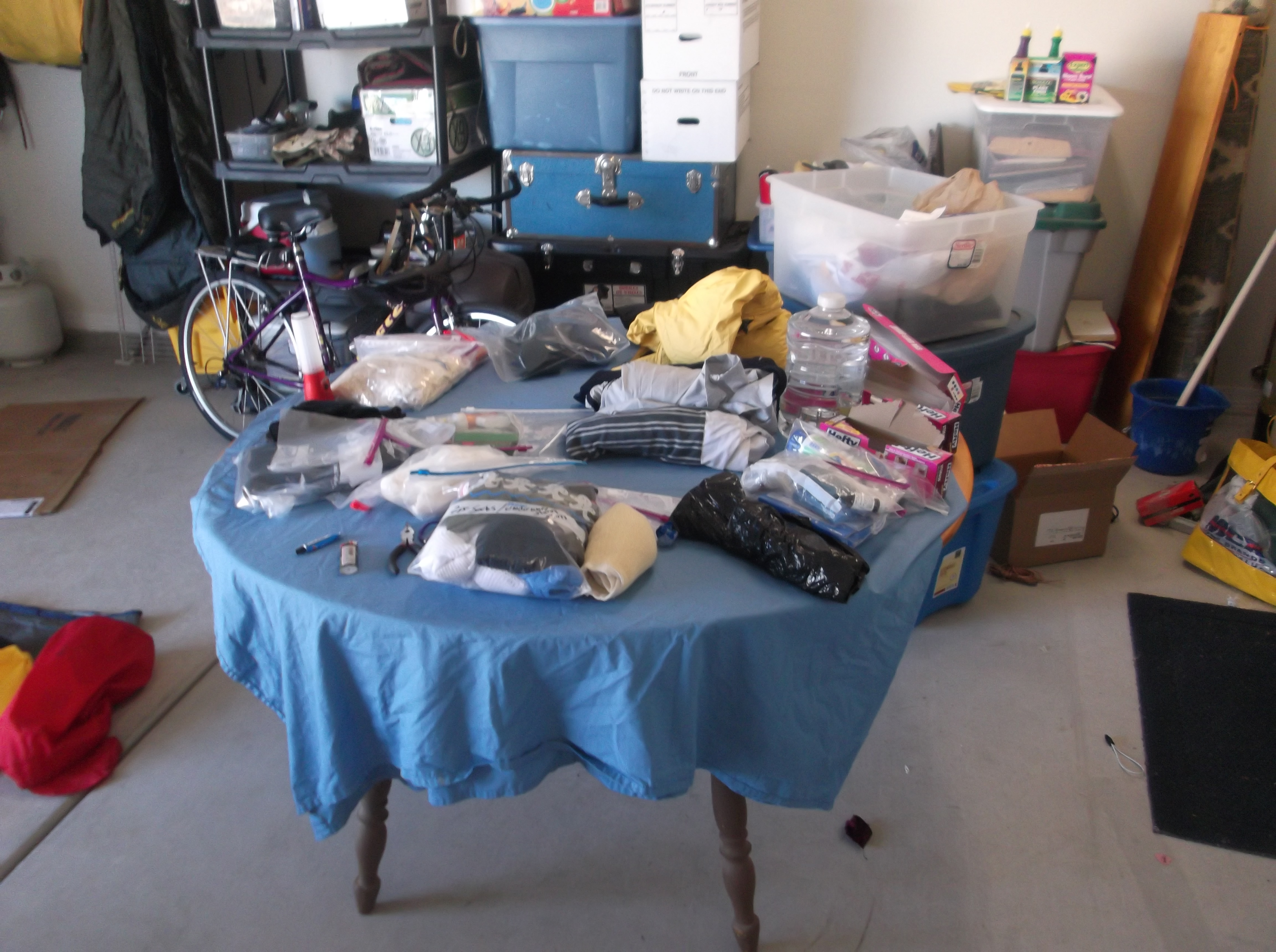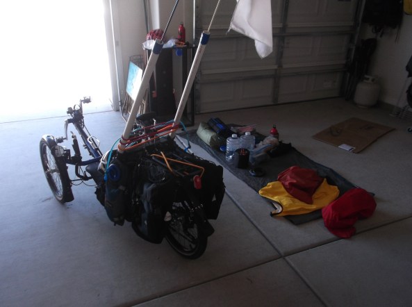 Some of the equipment changes are dropping the trailer and adding rear pannier bags. Cut the 8’X8 tent bottom ground cloth and made an envelop bag that will hold the air mattress and sleeping bag, when I am not using the tent. More of the pocket pita bread approach rather than the rolled tortilla method.
