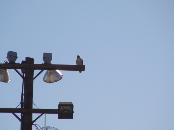 Just as I was finishing my little prayer at the top of the elevated lane with little shoulder – I catch a view of this bird gliding up to the freeway light pole. Yep It’s a Hawk watching me. Just a little sign from the one who protects us all that He is working in all ways. “Be Not Afraid”