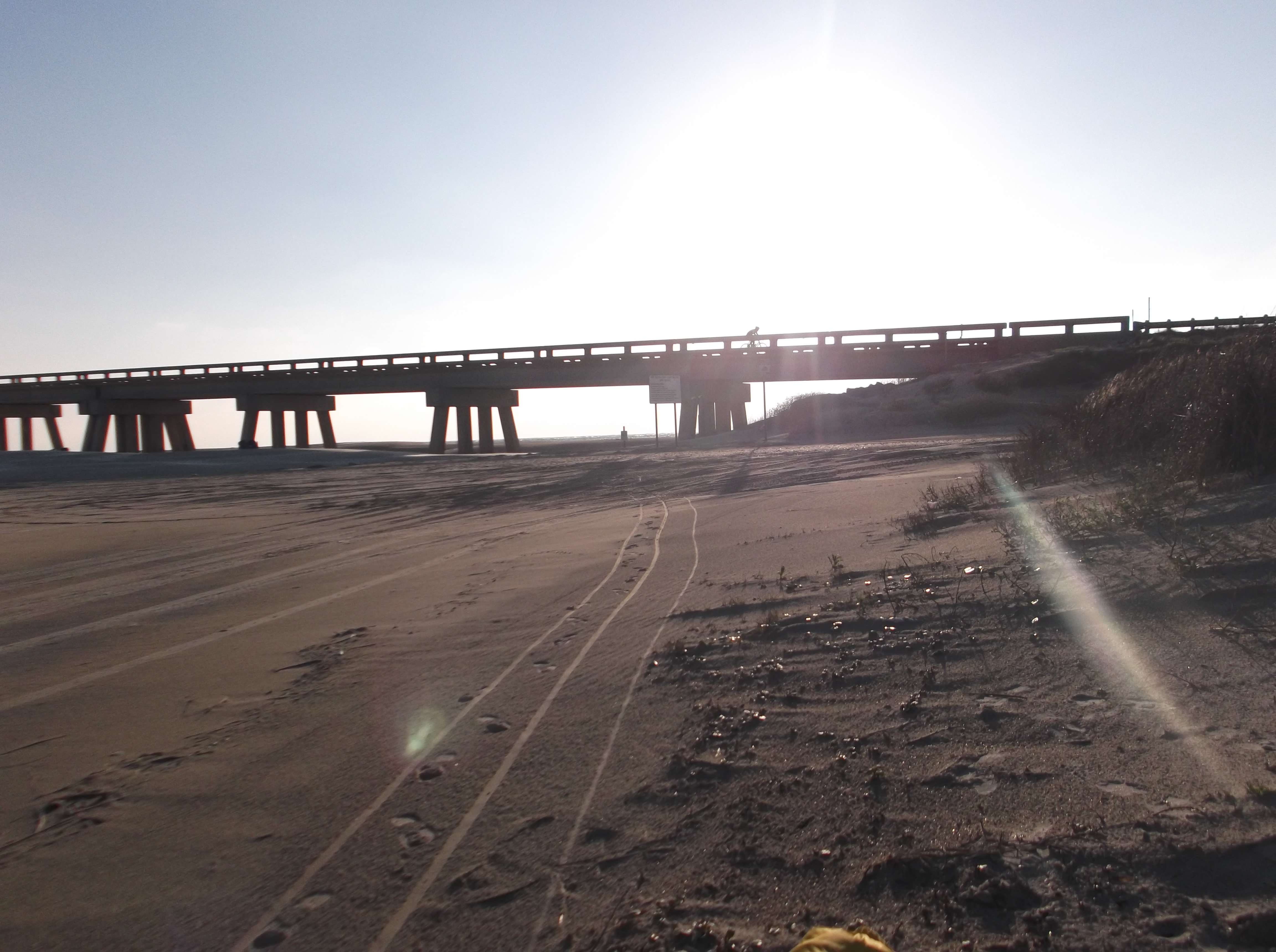 Great Morning by the San Luis Pass bridge – as you can see not much traffic on the sand – look carefully on the bridge for the speedy rider.