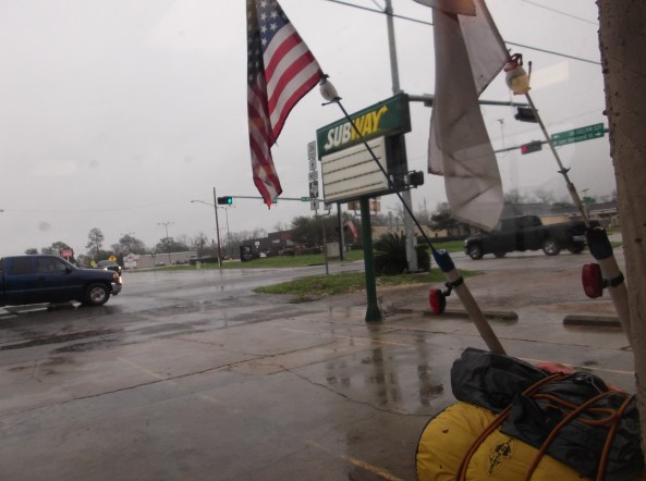 just a mile down the road there is this Subway - and it was really pouring while I had a breakfast sandsandwich and coffee and coffee and coffee.