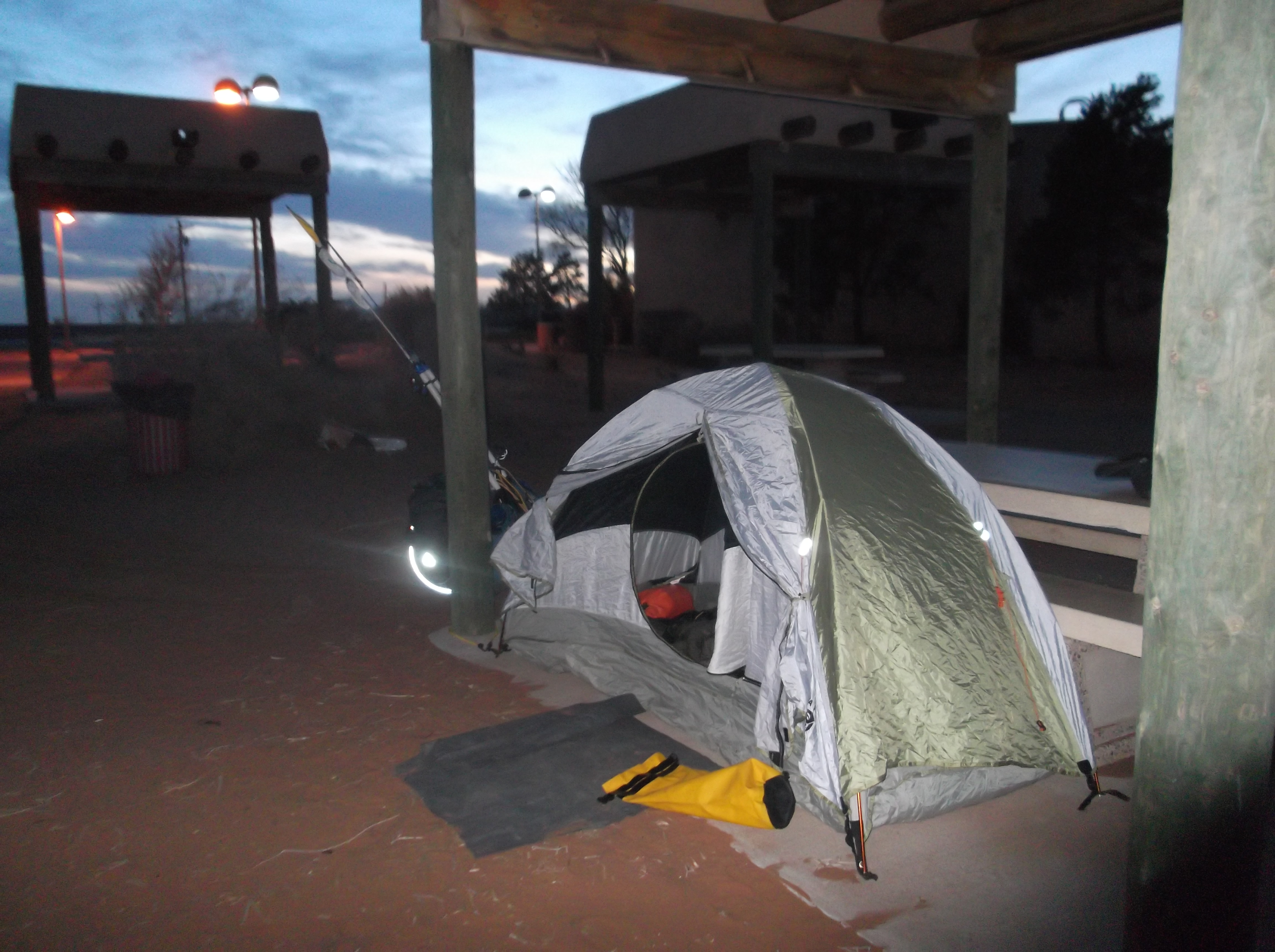 - Great spot for a camp – good thing the wind died down – the sand is covering grass and most of cement.