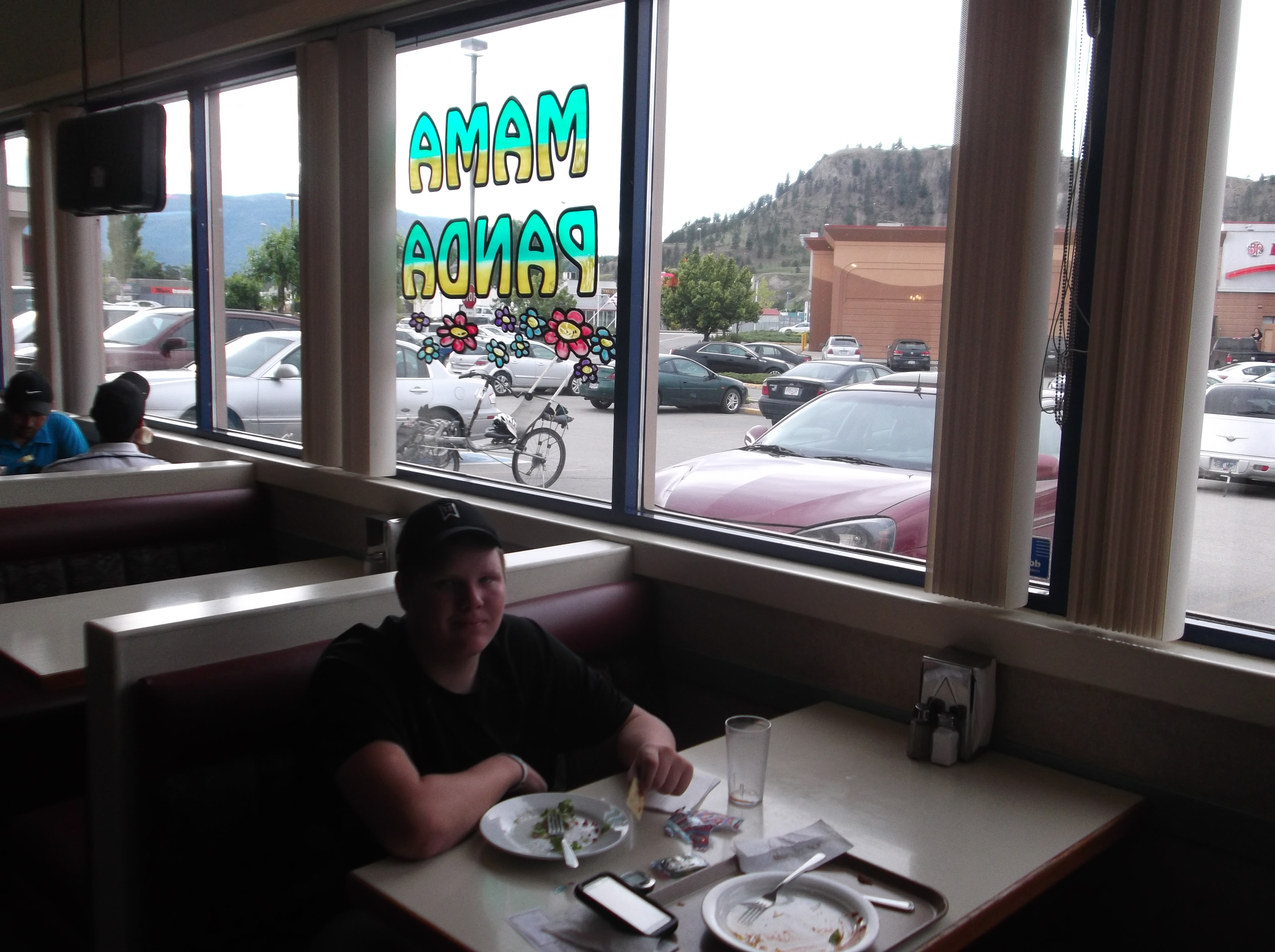 i A rest day and Buffett meal at Mama Panda in Kelowna another night at the Super 8. Doing light maintence, patching tubes, oiling the bikes after all the rain. setting up fishing rigs. repacking everything and of course rest and food. Plan is for North of Vernon 63km rain or shine.