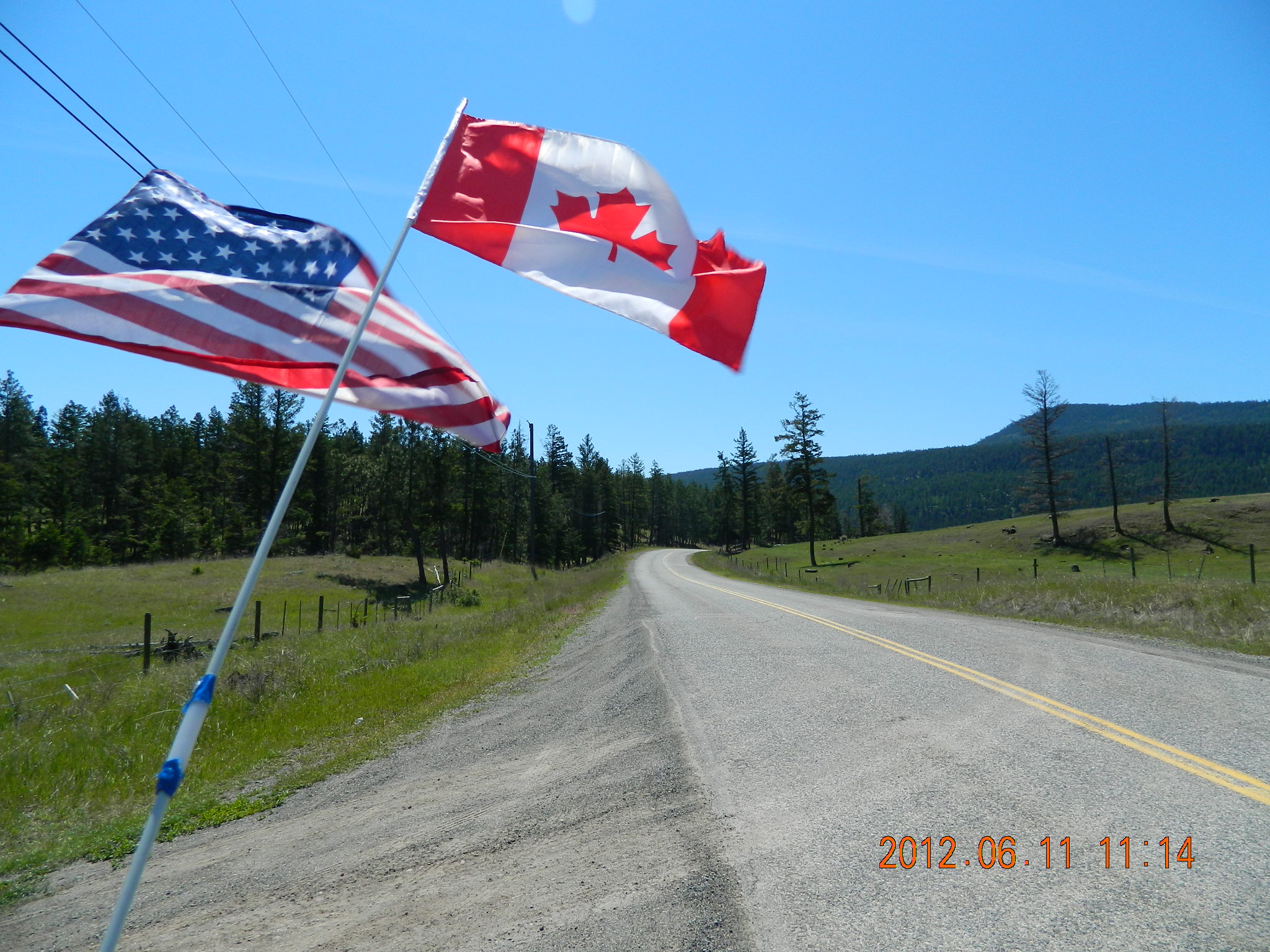 - Really peaceful road to Kamloops Last picture of Canadian and US flag The US flag blew off on a down hill that hit 68km/h (40mph) and not noticed until after the bottom.