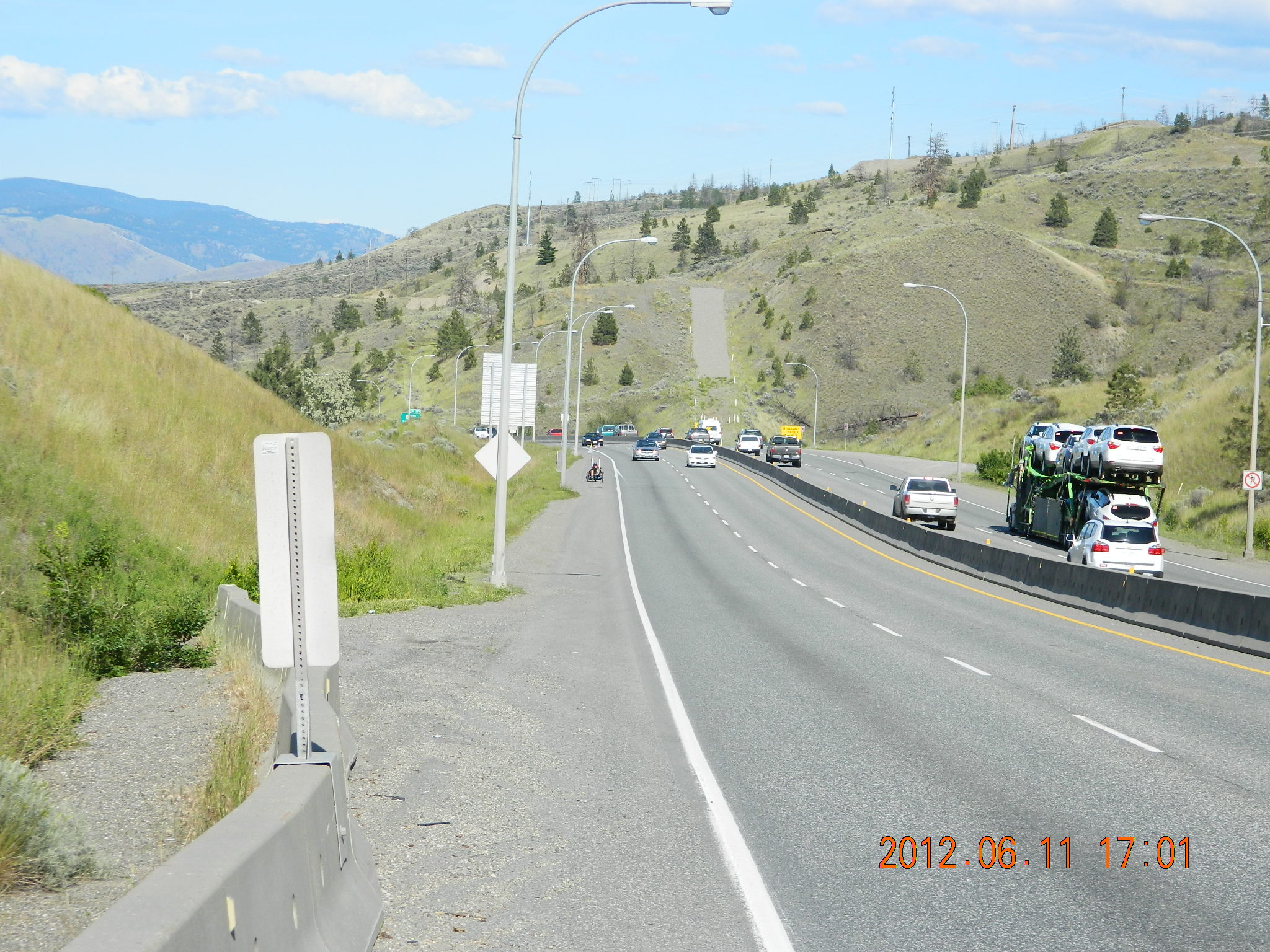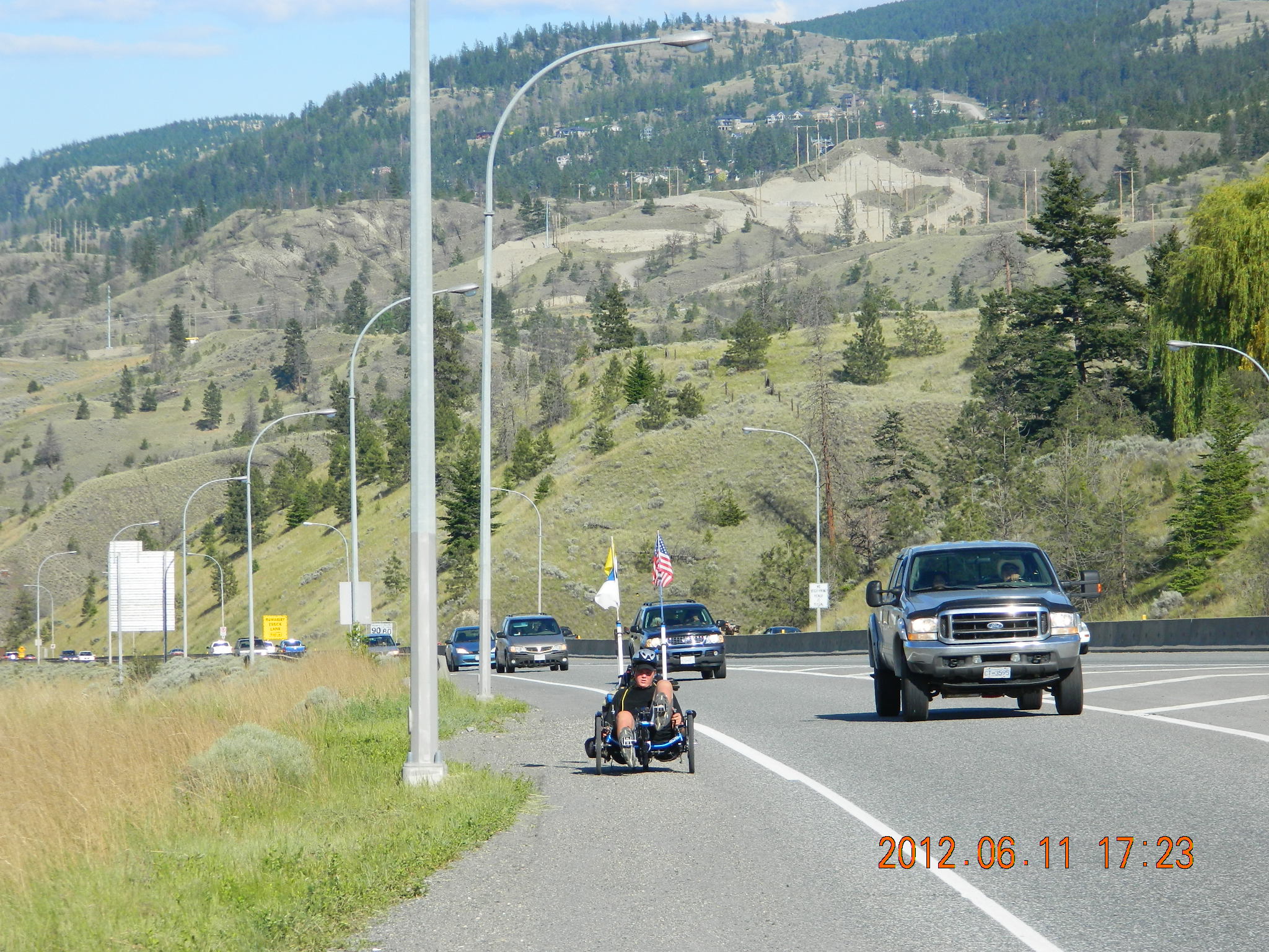 - Stopped at Barnhardt road and asked a fellow who was parked there about that road as a short cut into Kamloops – Great fellow, highly suggested the route and it is great. He stayed until Michael caught up to see the ICE Trike