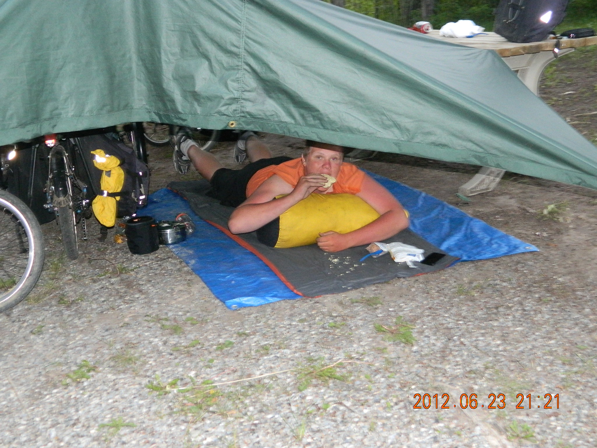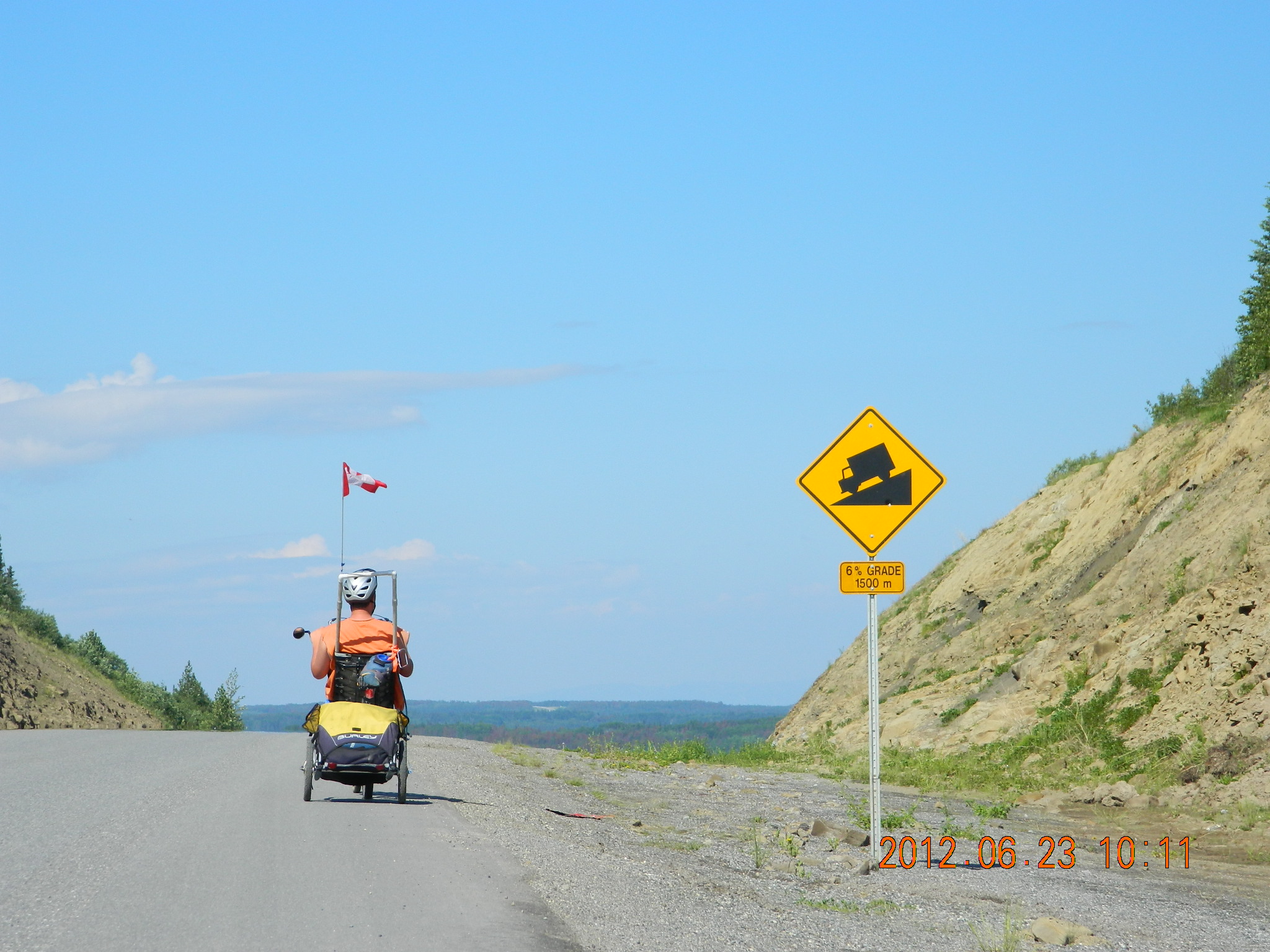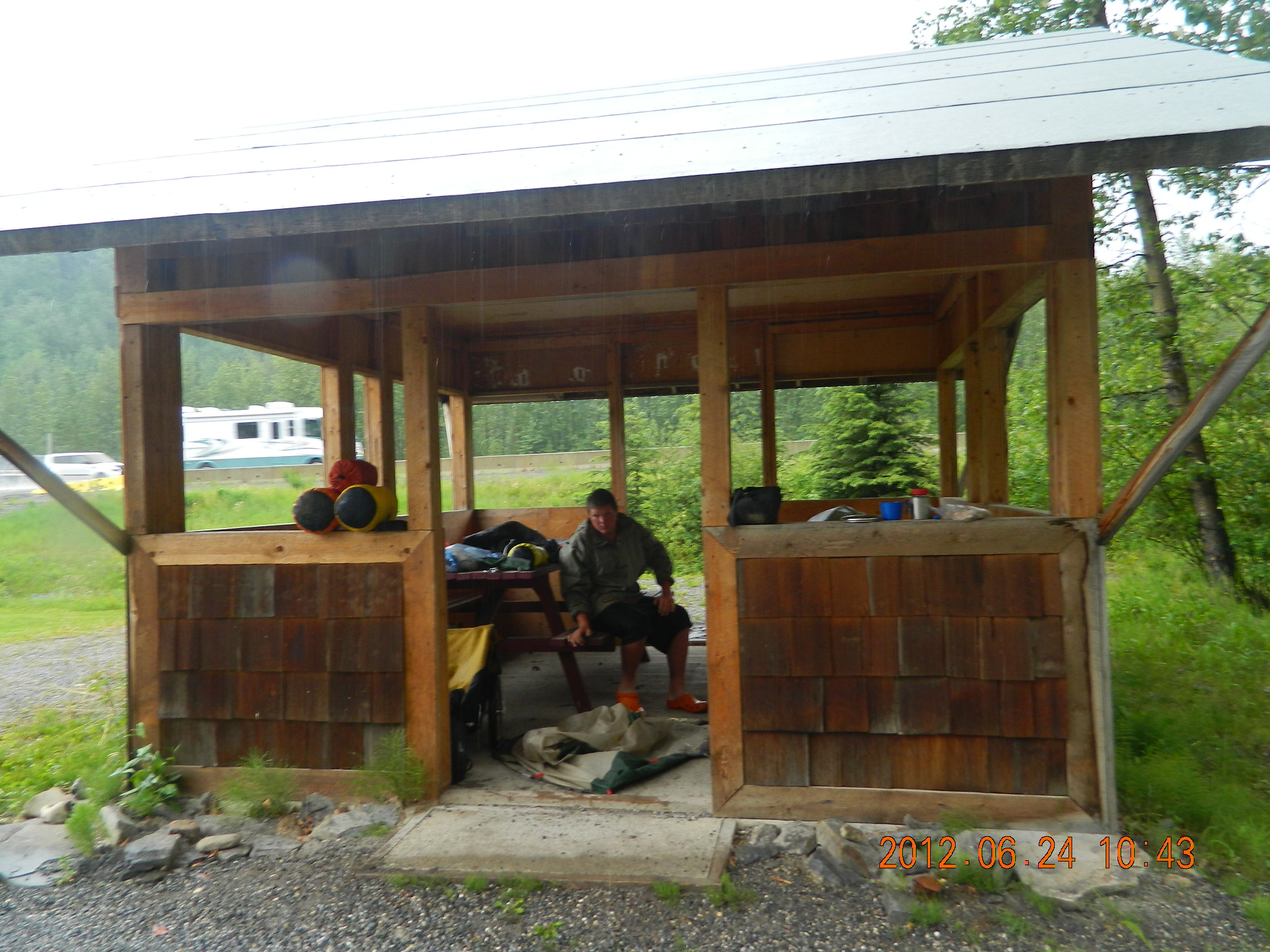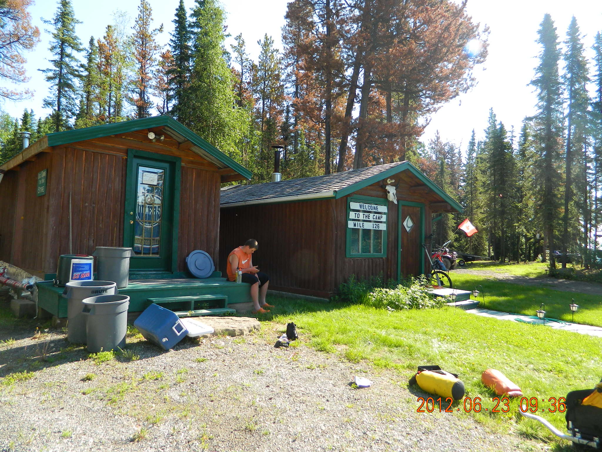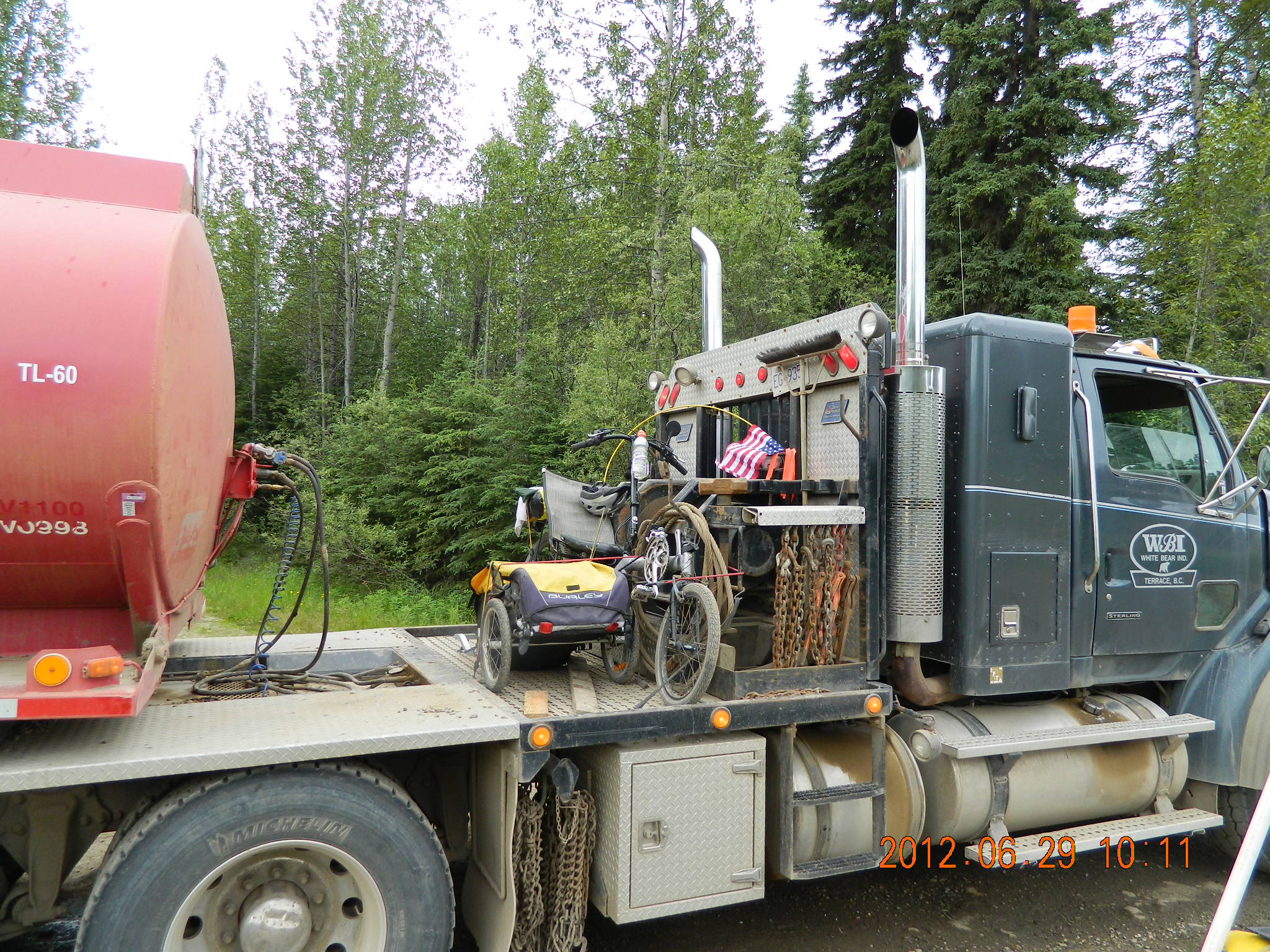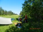 Papa Mike Fox and his 14 yr old grandson Michael Pruiett are riding bicycles to Fairbanks, Alaska from the USA/Canada border. They are currently traveling up the Alaska Highway and have gone over 1,100 miles and are 500 miles up the Alaska Highway. The remoteness and prices for supplies as well as rain incurred lodgeing have exceeded the budget. Any donations to help defray expenses will be appreciated – a hamburger for Michael up here is $15.00 drink extra. Today buying supplies for the Whitehorse, Yukon Territories came to over $200 and most was Ramon Noodles and peanut butter and Jelly.