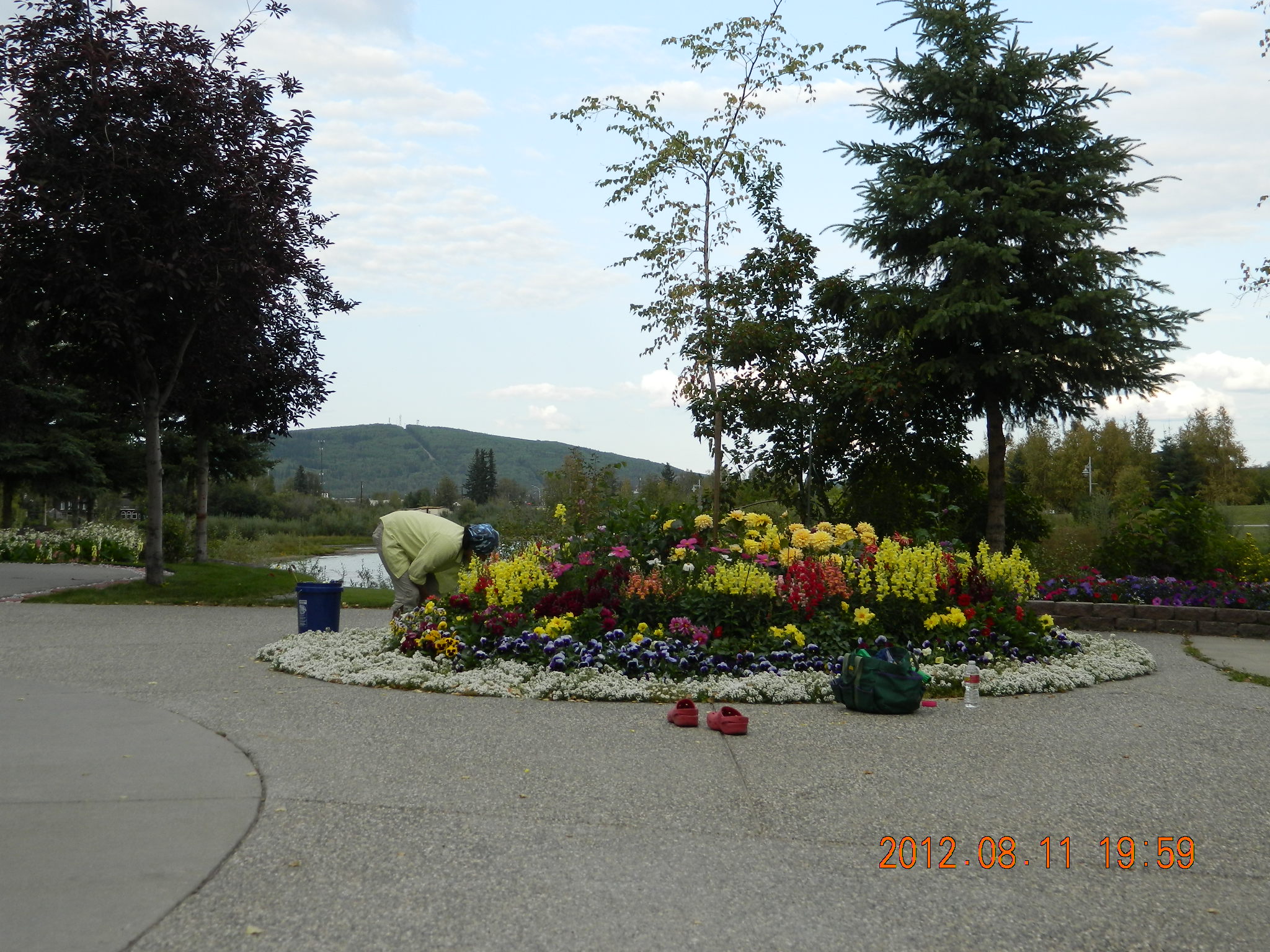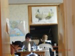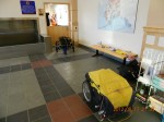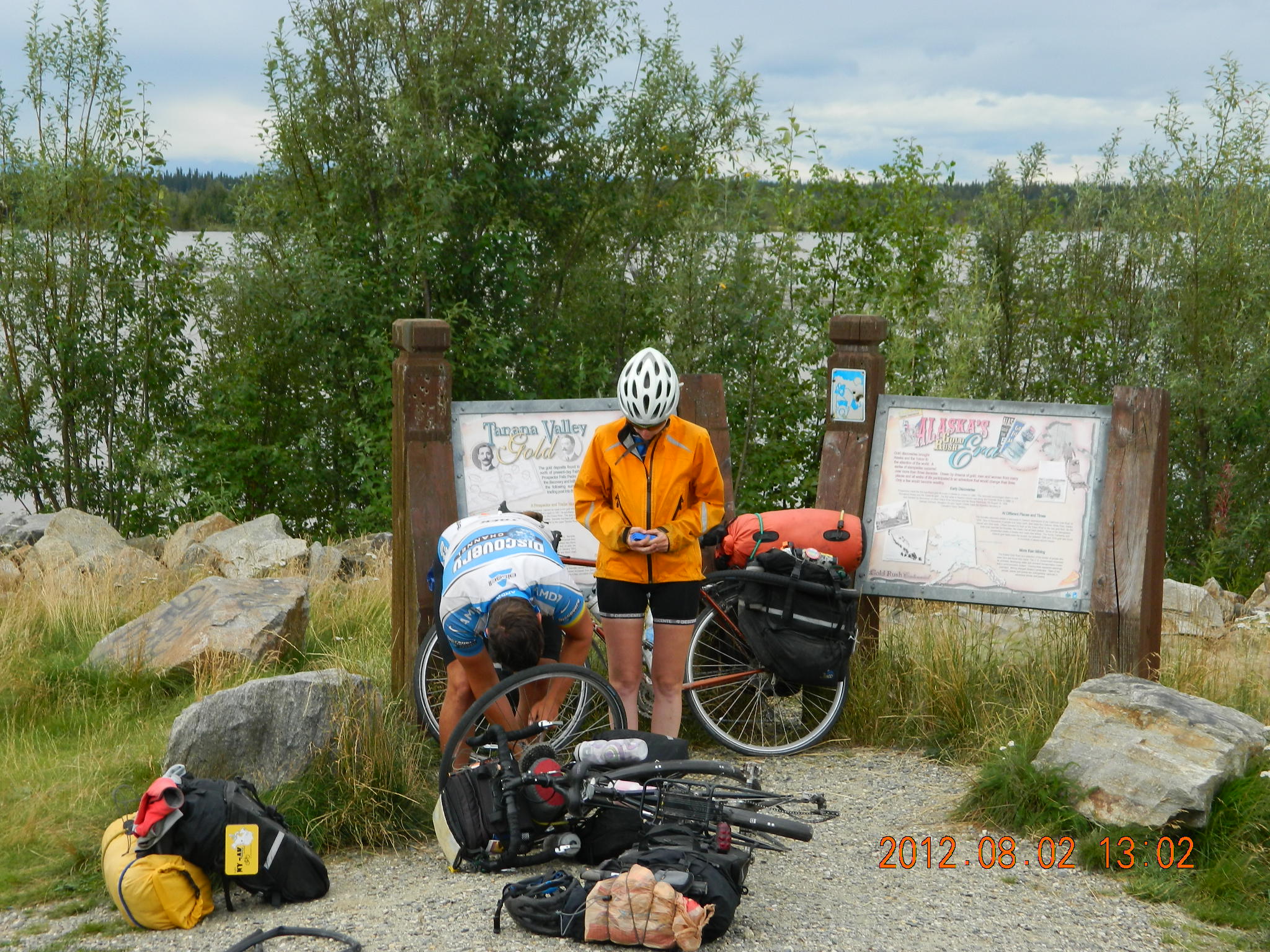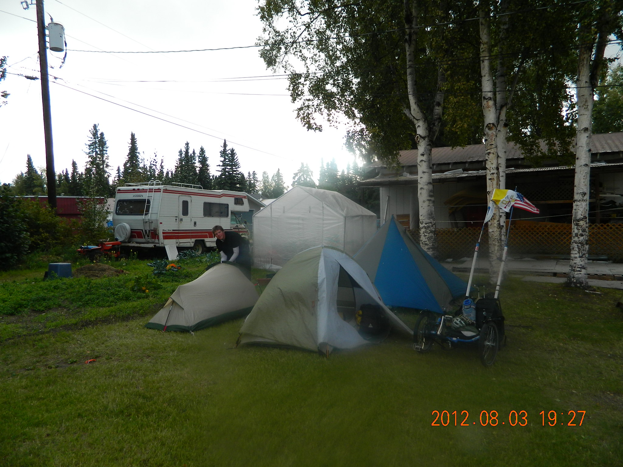 - a small shot into the common room of the Hostel – at the table is Bobby from Hong Kong, he has been here a few weeks waiting on the dorms to open at Univ. of Alaska Fairbanks. The young woman is from Denmark, the other fellow from Japan. Not seen is another person from Japan, Mike who is waiting on a flight to Hawaii, he sold his Tok, Alaska place and is relocating to live on the big Island of Hawaii. This Hostel staying and meeting fellow adventurers from around the world is kinda cool. A couple who where here when my Grandson Michael was here, have asked about him. He is doing really well playing football and being home. He did tell me he missed riding his bike.