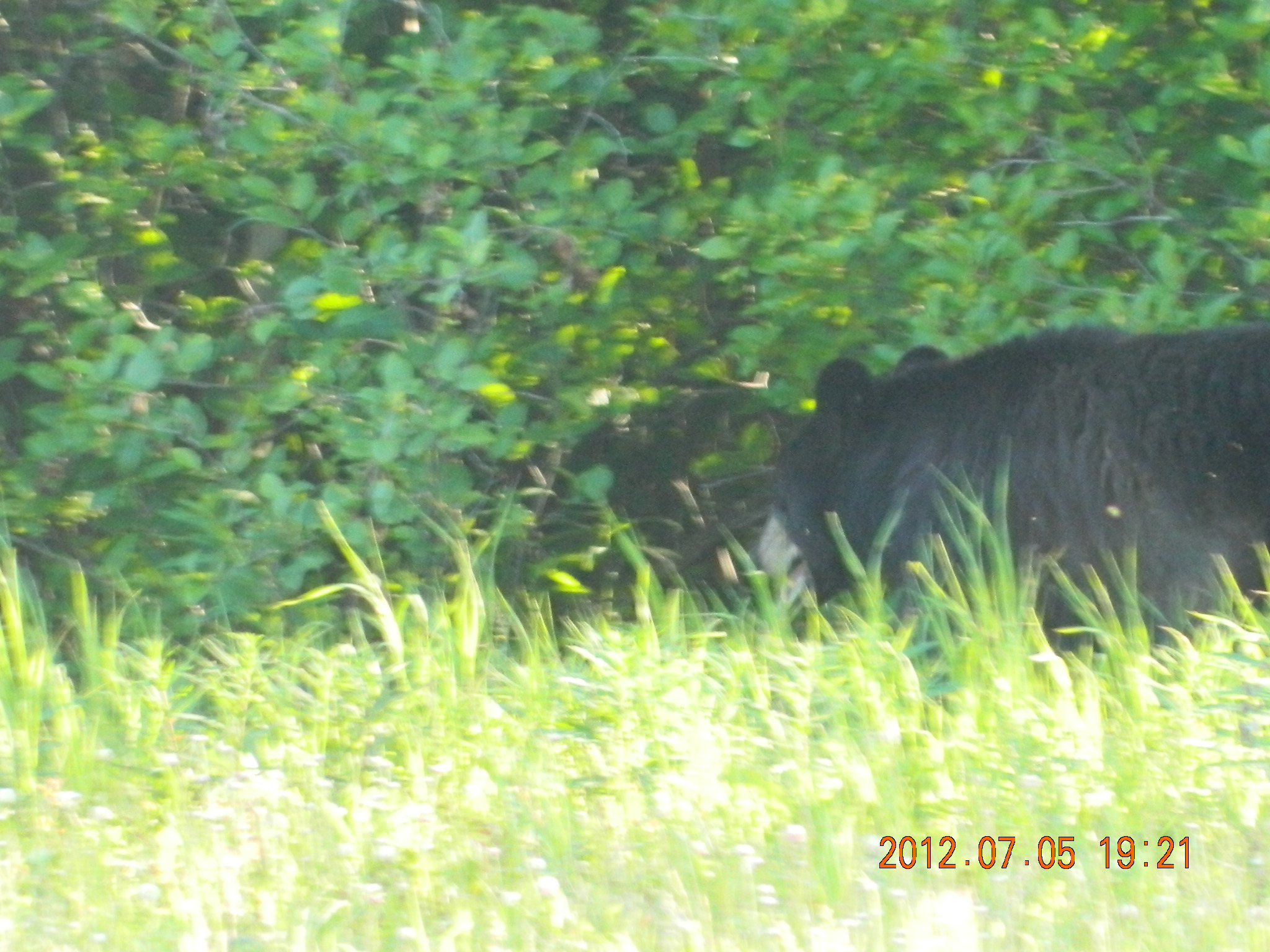 - And yet more Wildlife big black bear on the side of the road, just grazing on the grass.