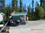 - Michael and Emmy coming to our favorite sign before dropping into Teslin lake