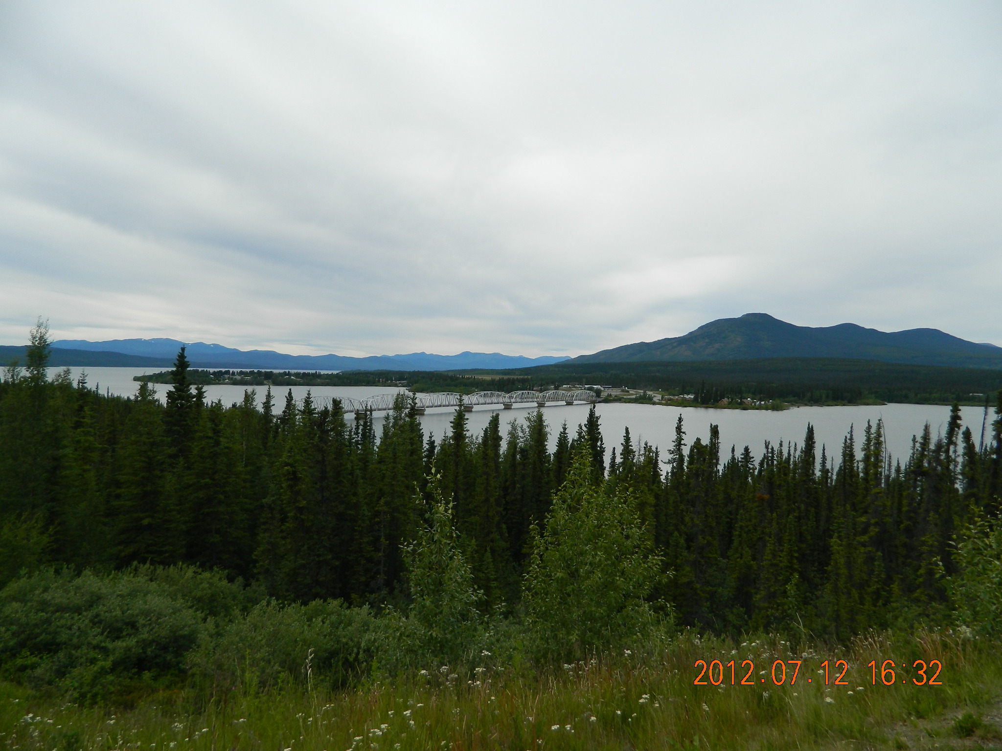 - The bridge over Teslin lake – again another wonderful easy fast downhill. Michael Blew past us while at the rest stop and meet us across the bridge.