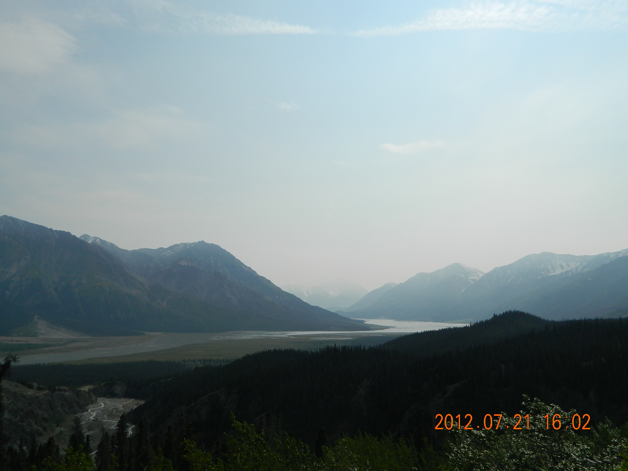 - The Kluane lake is ahead – it is hazy smokey – the info center said it was from forest fires in Russia, Looking on world weather images later I guess Russia is next to Alaska after all. any way the smoke blows over from there.