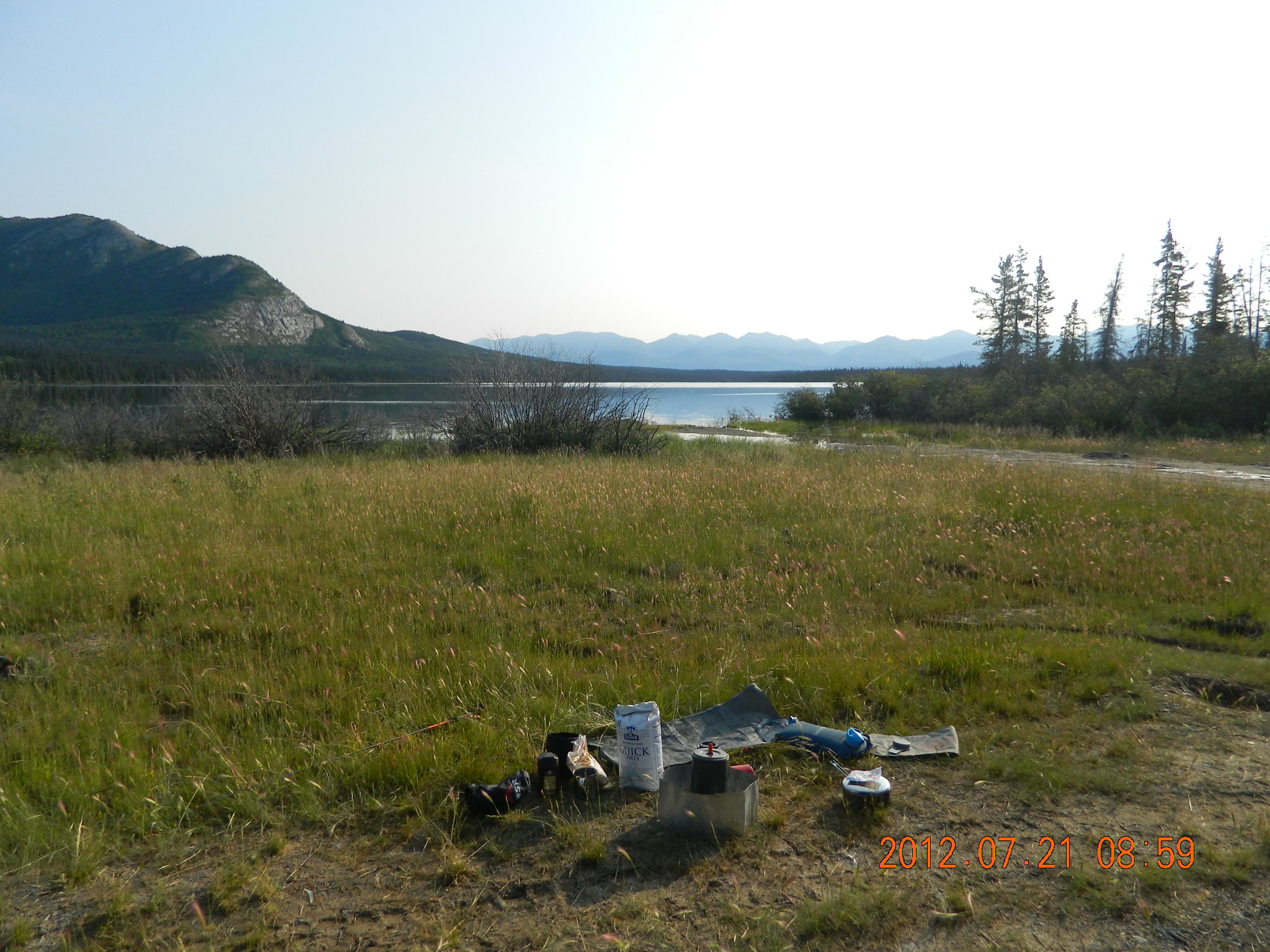 - The next morning – the cooking spot away from the tents – here is where we fryed up the fish and fixed oatmeal for breakfast.