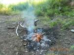 - While the boater were out fishig – Papamike caught one and has it cooking over the fire for dinner.