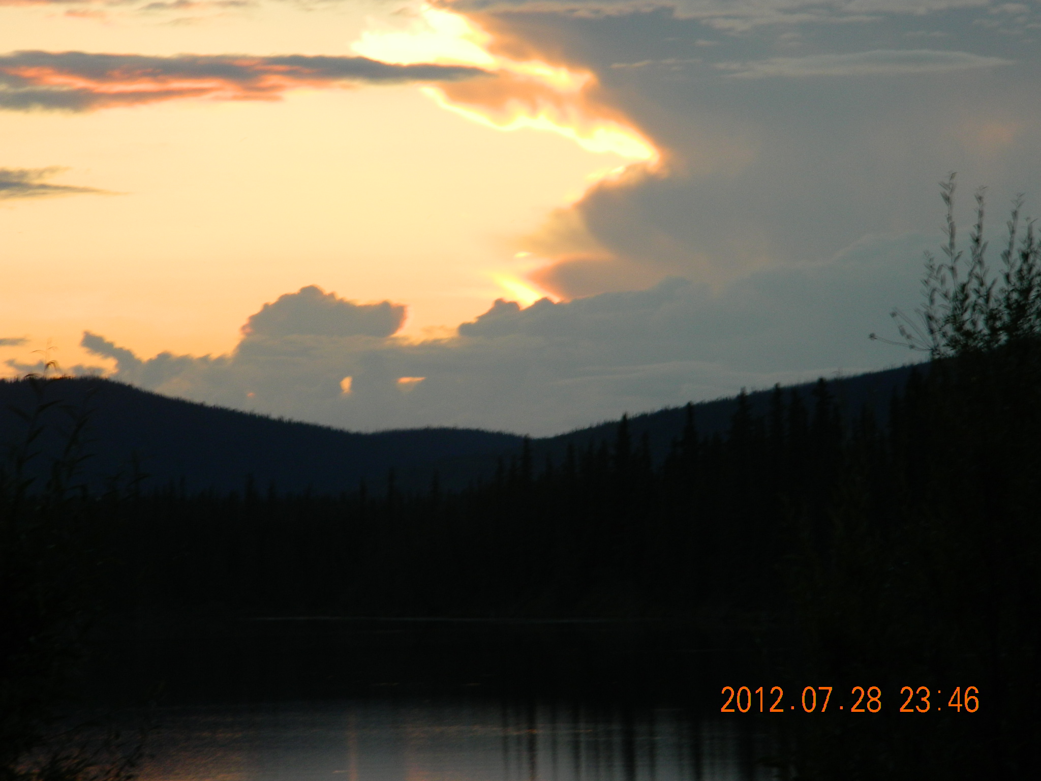- The end of another day with a beautful sunset at 11 thrity at night. Ya know even the days that do not seem to have much in them are full of the unexpected, unique never to happen again in either the time or space. The surroundings are always different. Even the routine of peddling the bicycle is always different as to the feel of the environment, views, cool, hot, up, down sun, rain and just what energy each of us has in the present. That is what makes the Bicycle or hiking journey different than a car, motor home trip with the constant set, speed, temperature, lighting in day, and at night, The constant blur and out of touch with the ever changing reality of nature. I wonder is perhaps there a reason to fix the natural environment into the constant of a computer program of predictable results – The weather changes, species have come and gone and come again humans change and so does the environment. Our own arrogance and ego demand that we are the cause and reason of all this. If only we can get every one and everything to perform the way we want it to then the world will be safe, secure, predicable, sustainable, balanced, livable. Of course the humans who are in charge then change their minds, whims, or something and the program they want. So it is Global Cooling of 40years ago coming, then Global Warming is coming for 20 years, now just Climate Change each with the same mantra, act the way we say or we are all doomed, “Be afraid!!” How about we clean up each mess we find, as it comes along and Fear NOT. Oops where did that come from.