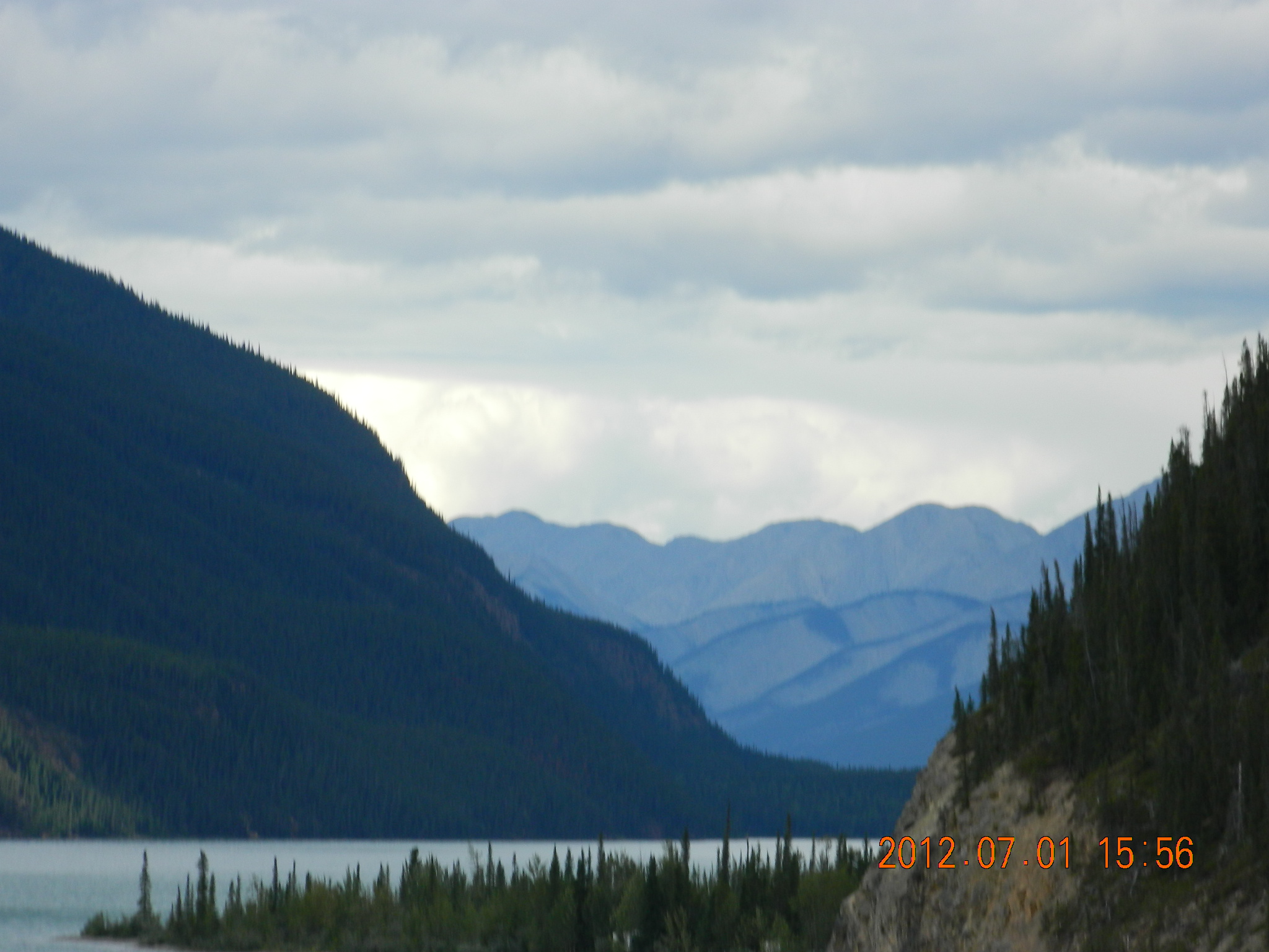- still rolling to Muncho Lake the terrian is breathtakeing along with the bicycling.