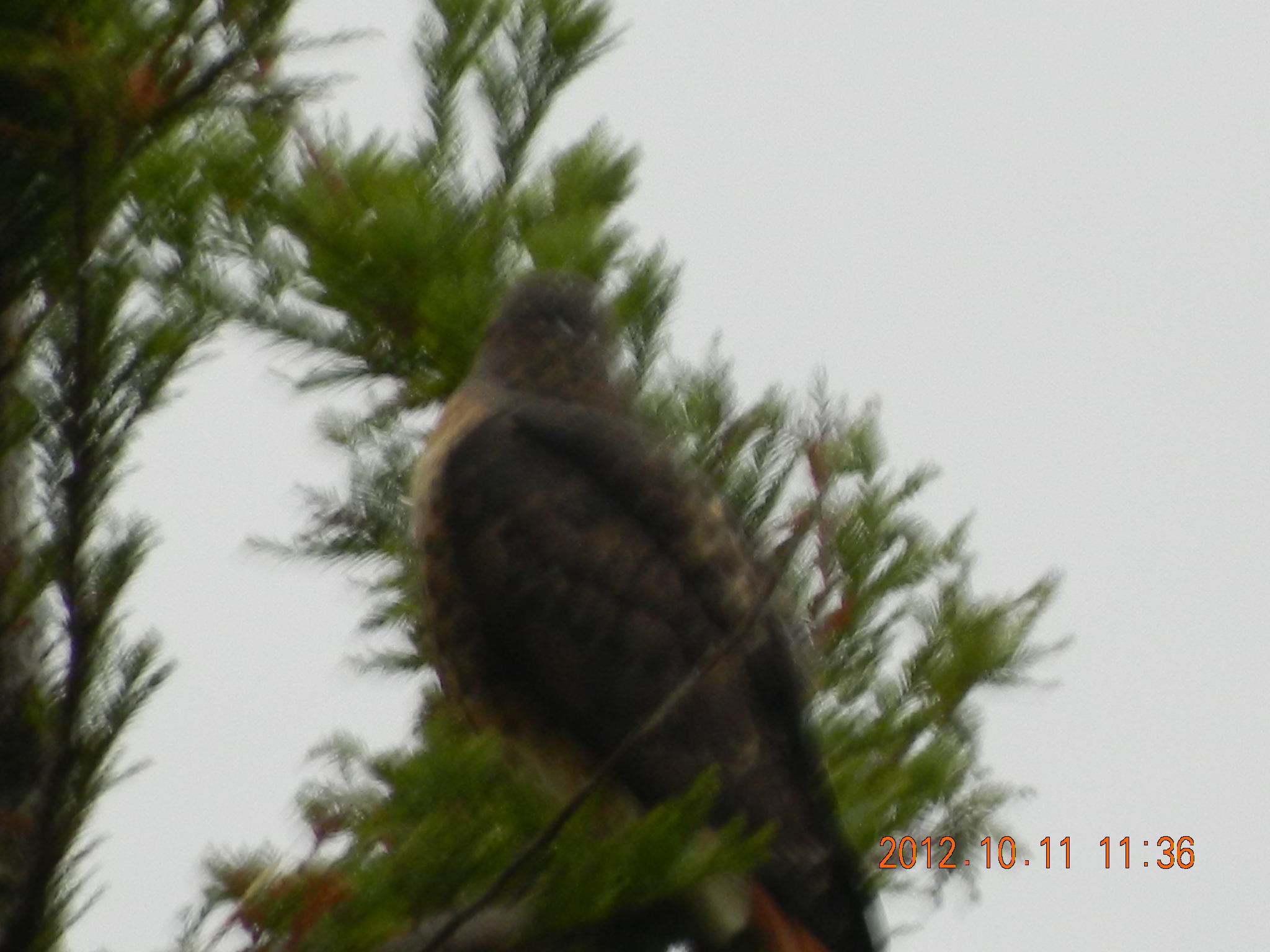 - This big hawk dropped down in the median next to me a scored a mouse – A few minutes ago he flew over my head and landed in the tree next to me.