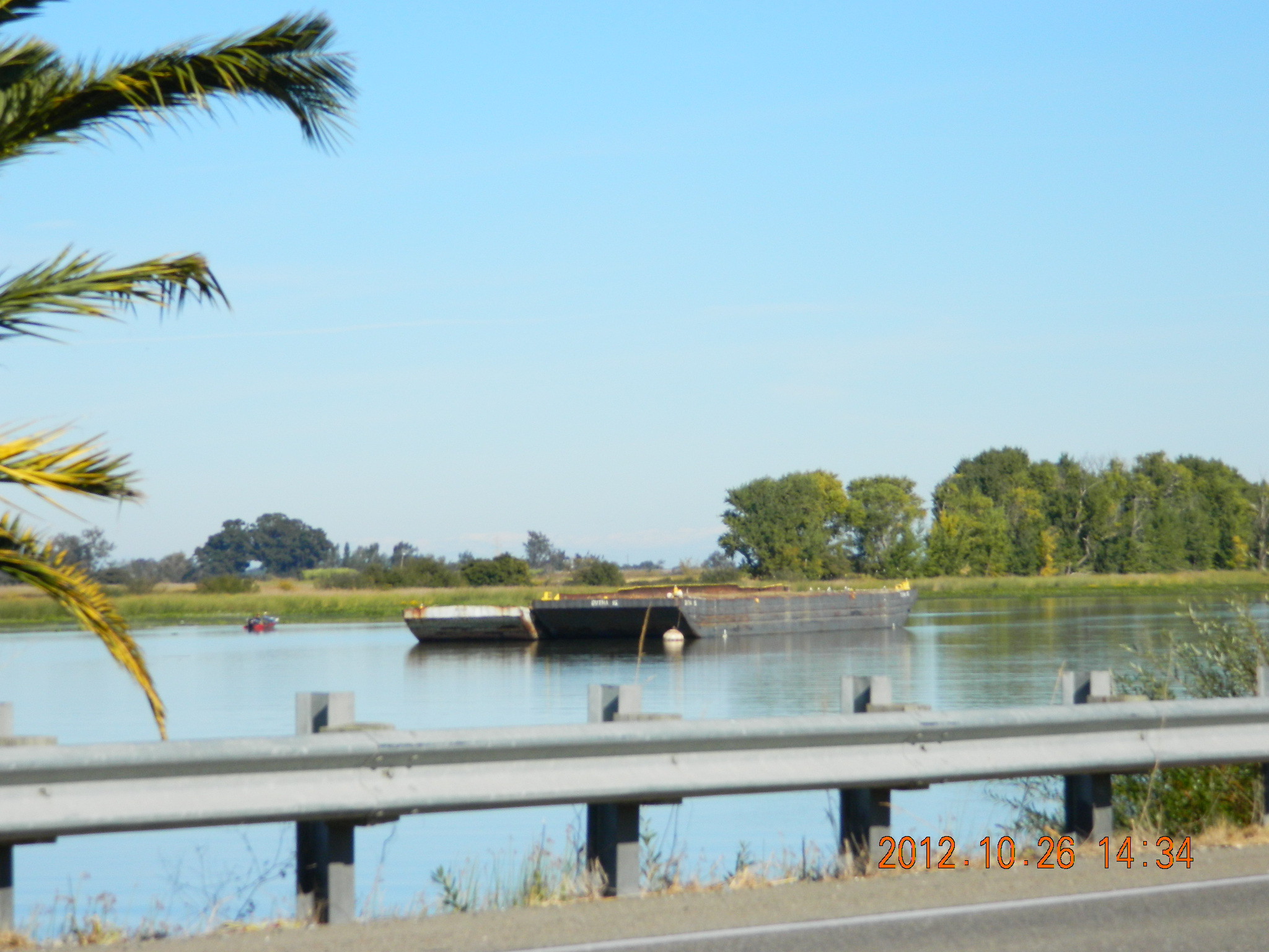 - a barge on the river